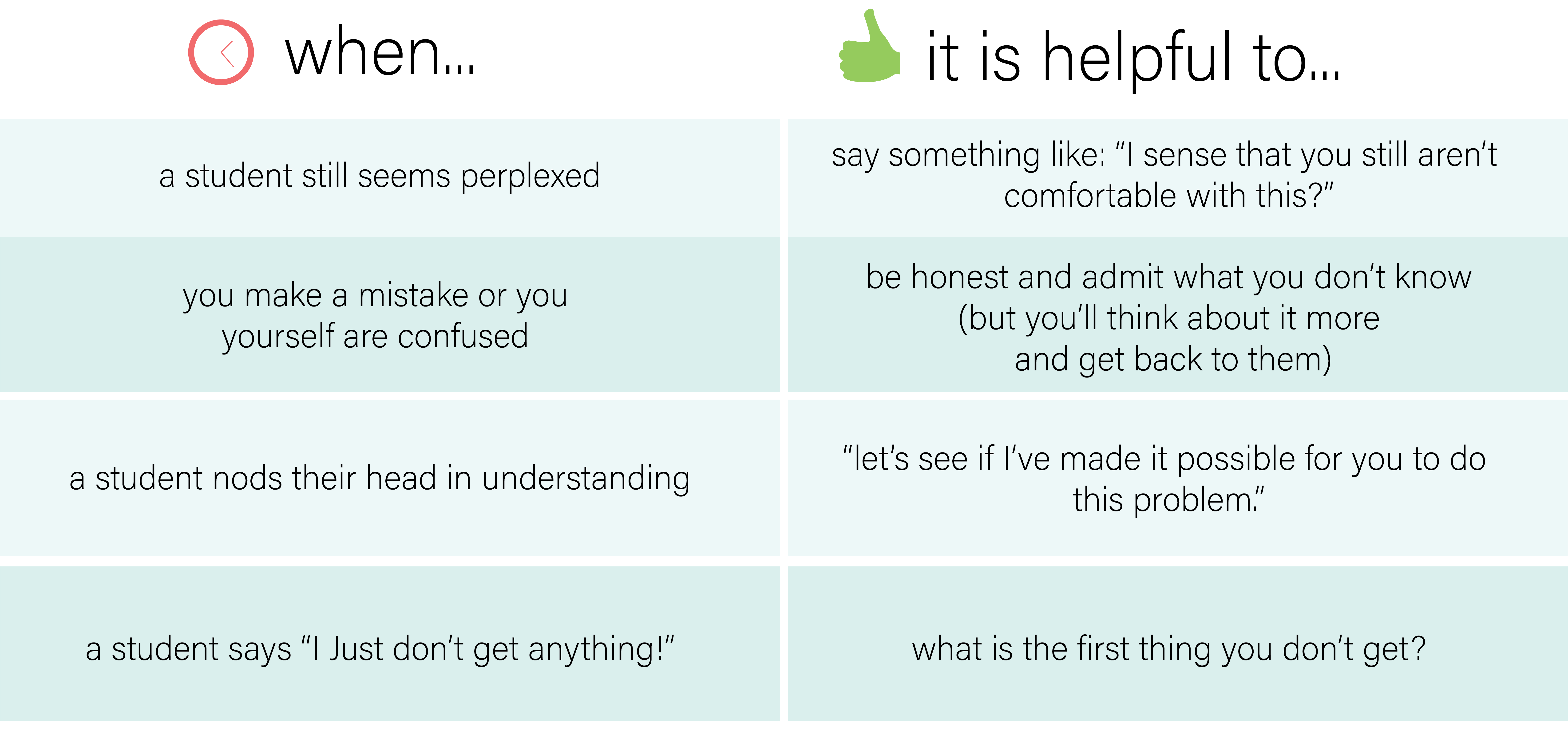 - Take responsibility in a student not understanding something you have explained so they don't think it is their fault.